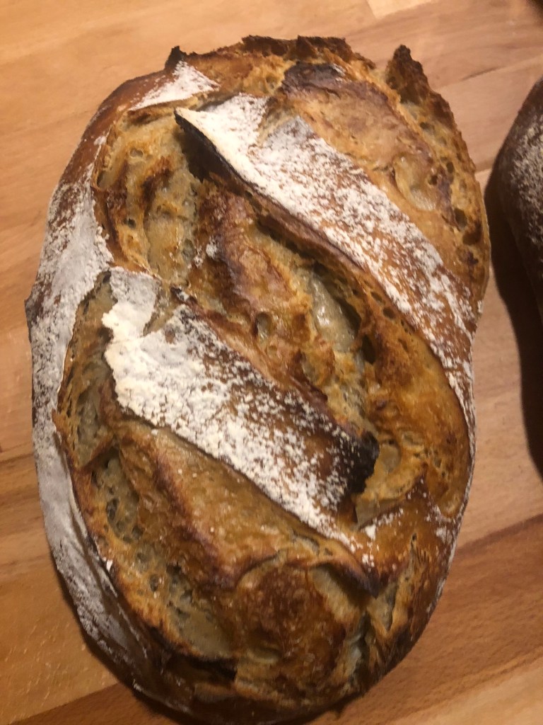 je produis du pain au levain, pétri à la main et cuit au four à bois à partir de farines bio et locales.